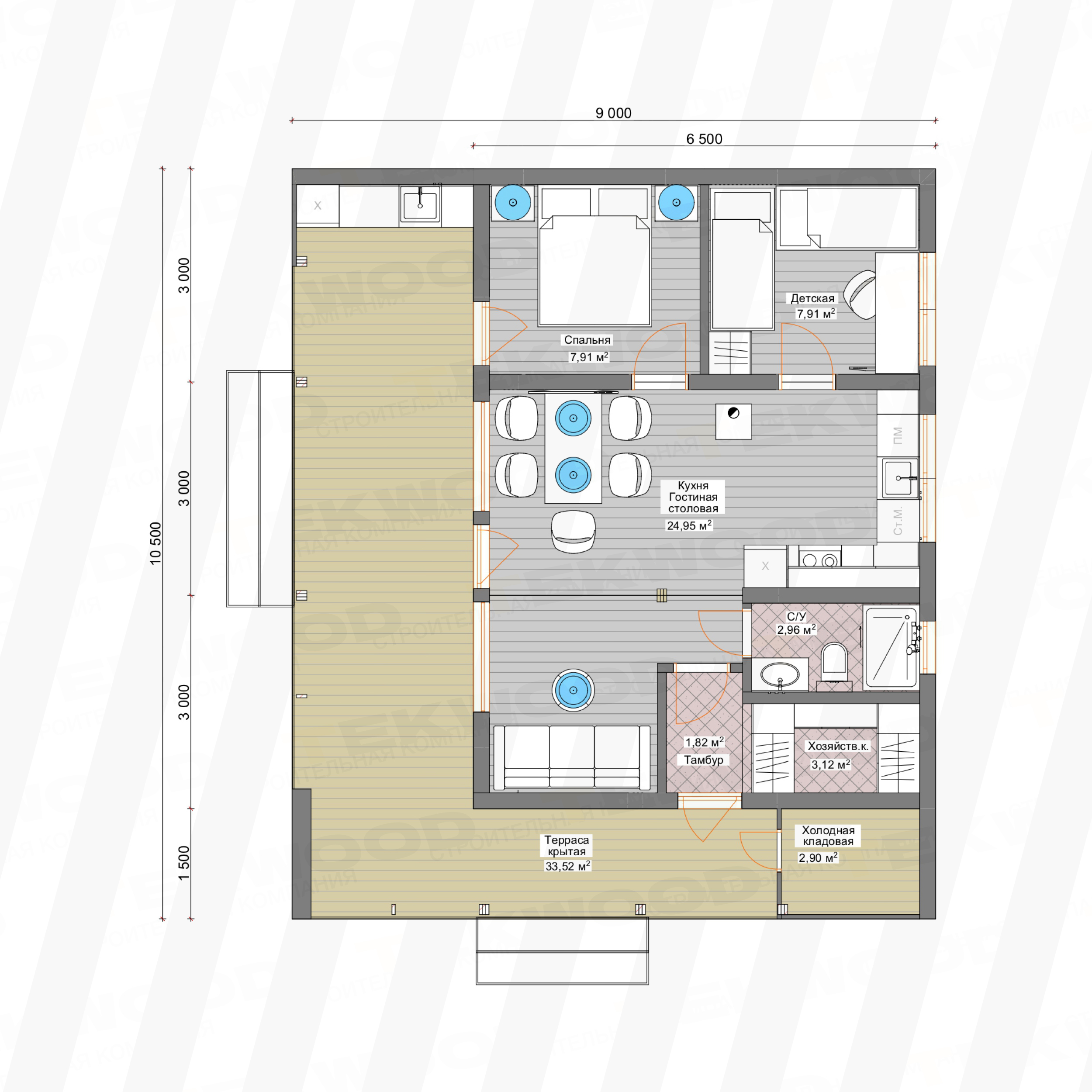 | ШхДхВ (без открытой террасы) | 9000х10500х3645 мм |